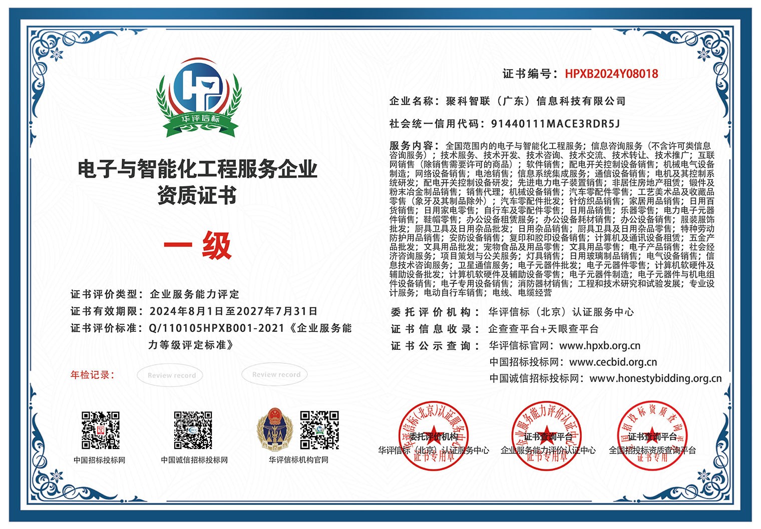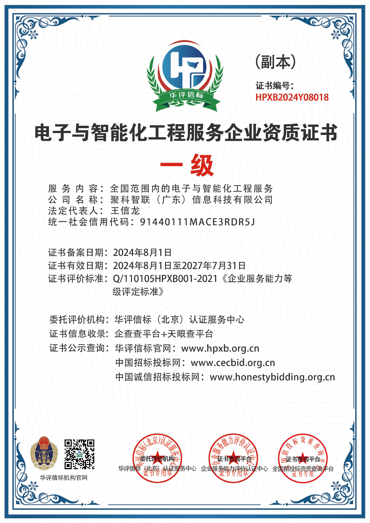 我們擁有證書:電子與智能化工程服務企業資質一級證書、安防施工維保服務企業資質一級證書、智能建筑弱電高級工程師、華為HCIP高級認證ICT工程師證書、特種作業操作證、電工作業證、??祬^域認證二級專營店、大華股份認證服務商、品牌商標認證第9類認證,第37類認證、頂級國際域名證書、等一系列權威證書認證。 我們一直以優質的服務和過硬的技術為核心產品一直不斷更新研發至今,致力于打造中小企業優質的互聯網信息化產品設備提供服務商。